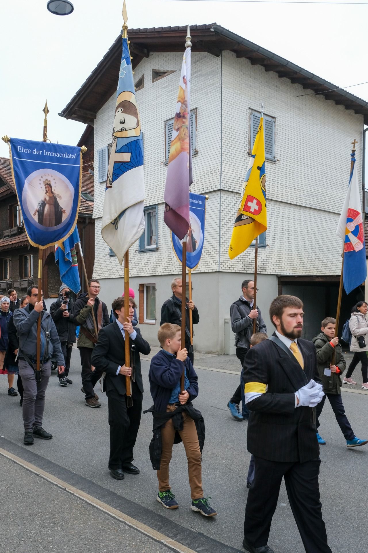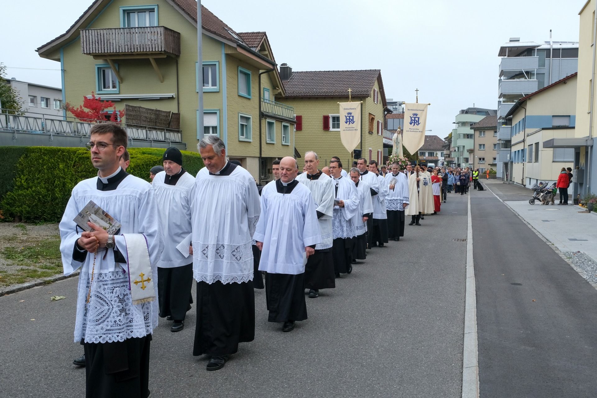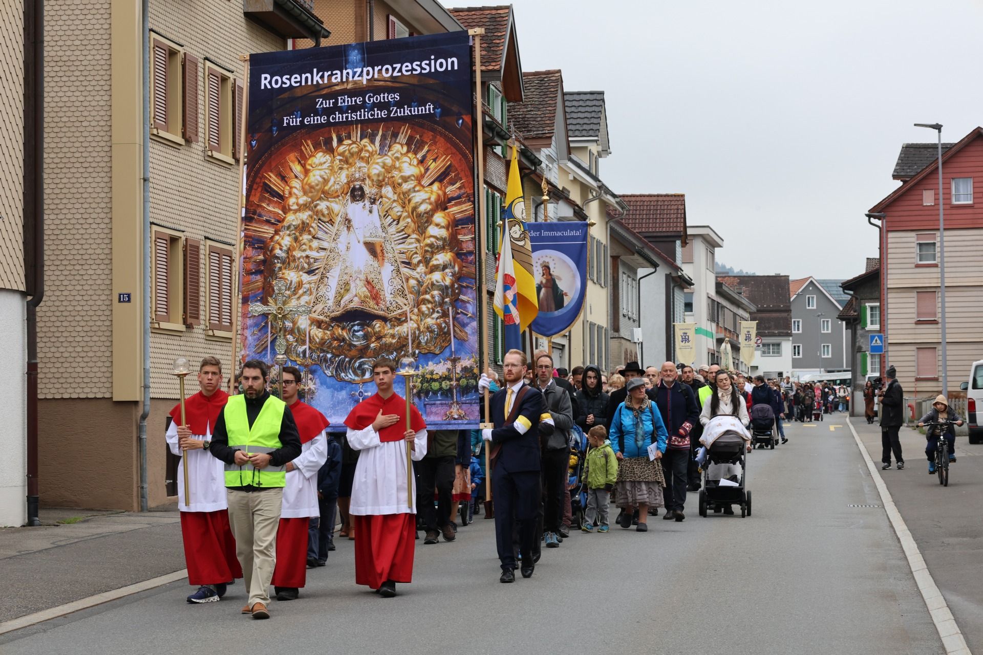 Prozession 30 von 33 webOrganisiert wurde die Prozession von der Militia Immaculatae (MI), zu Deutsch Miliz der Unbefleckten. Diese katholische Bewegung wurde 1917 vom heiligen Pater Maximilian Kolbe gegründet. Ihr Ziel ist die Förderung der Marienverehrung, insbesondere durch die Verbreitung der Wundertätigen Medaille und des Rosenkranzes. Pater Kolbe ist bekannt dafür, dass er im Konzentrationslager Auschwitz sein Leben für einen Mitgefangenen opferte. Die MI der traditionellen Observanz zählt mehrere Tausend Mitglieder im deutschsprachigen Raum und über 100’000 weltweit.