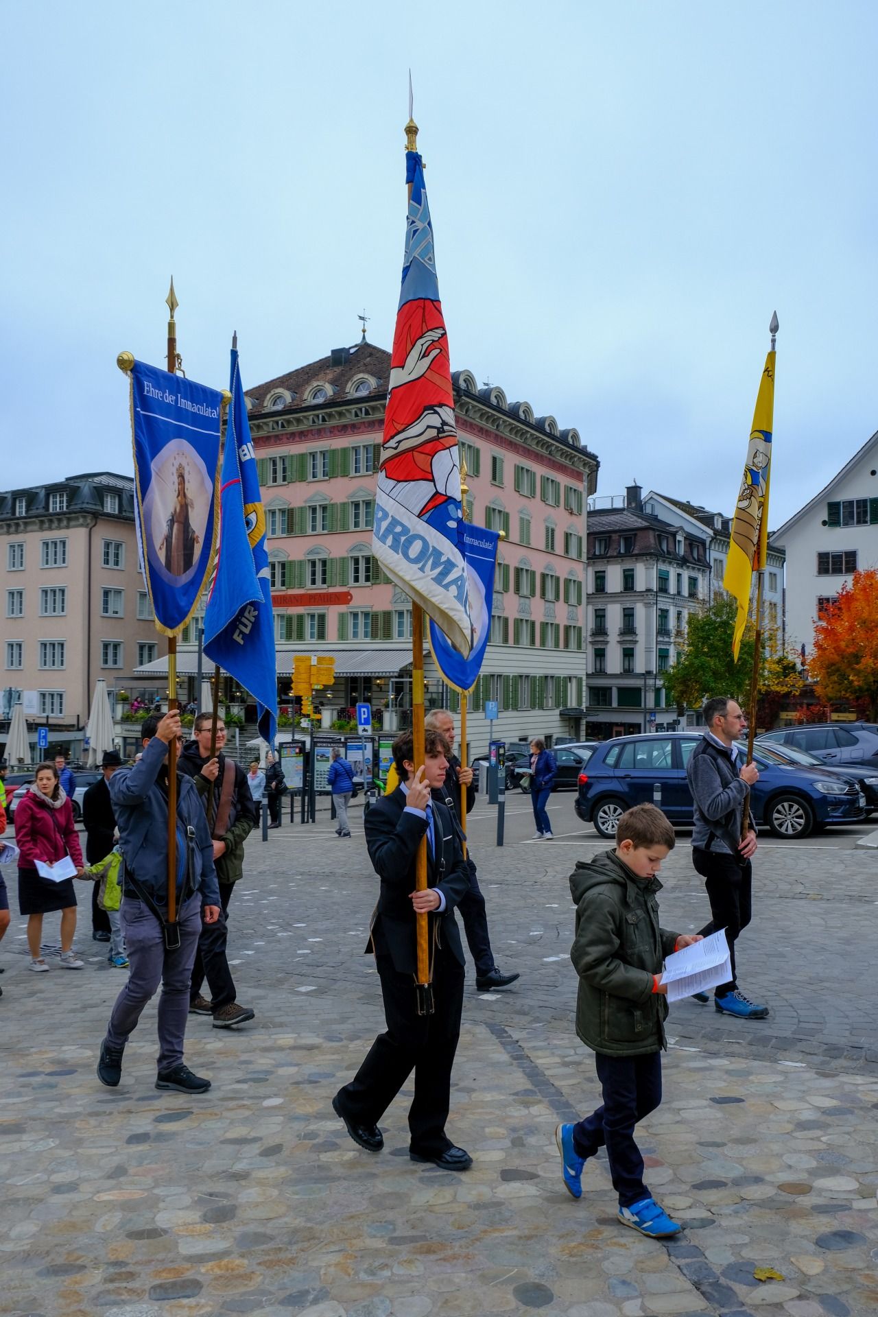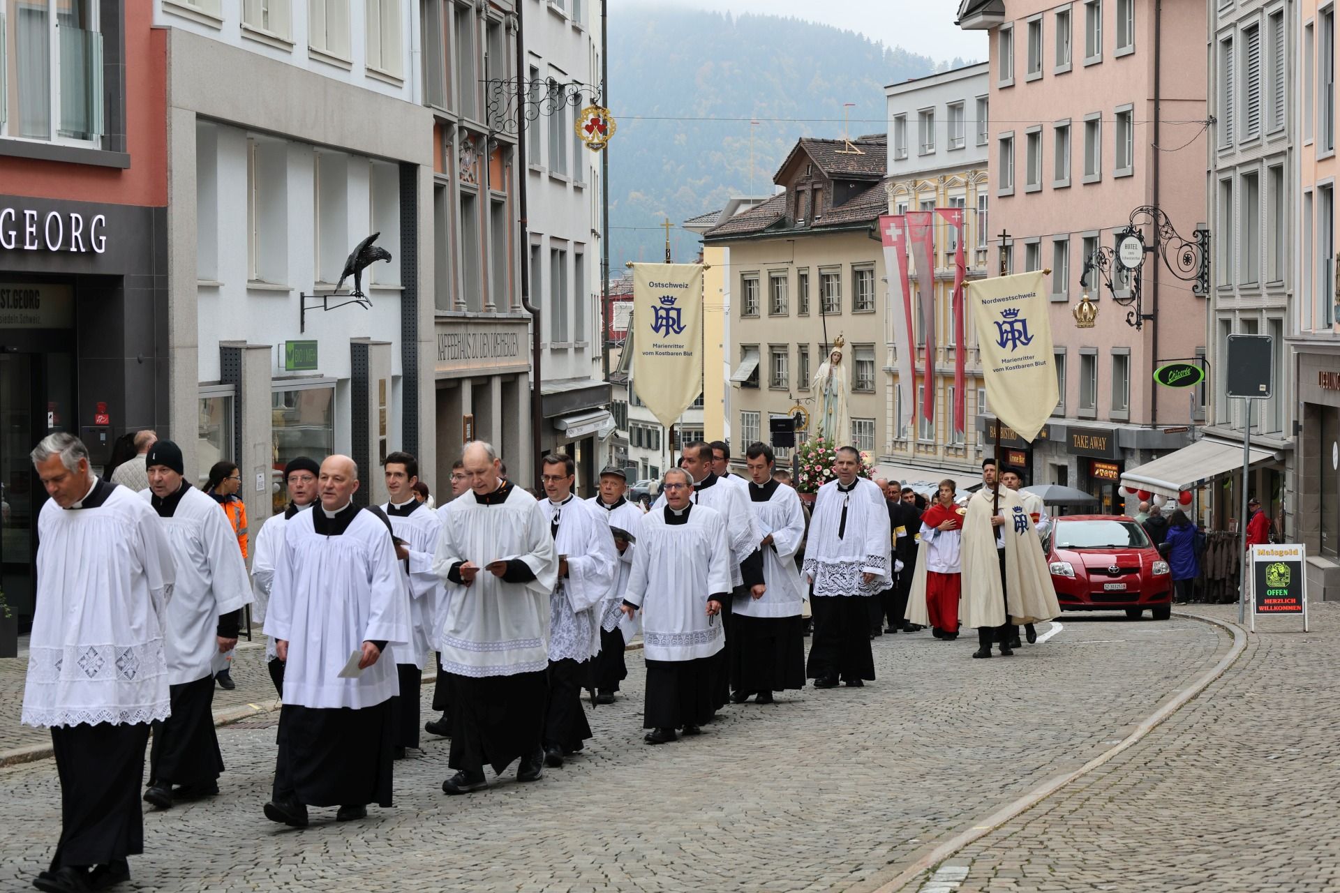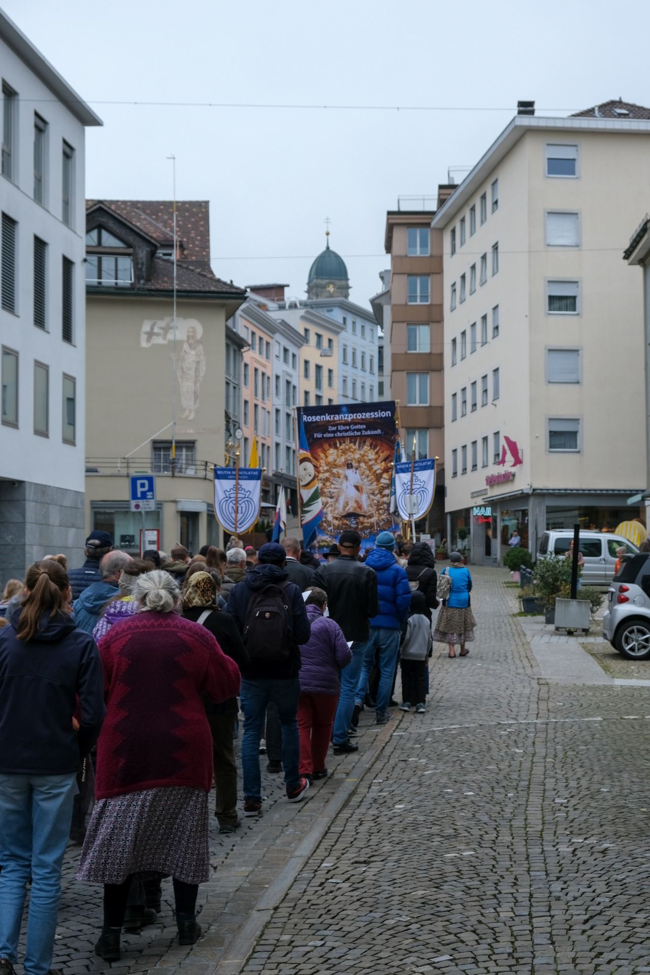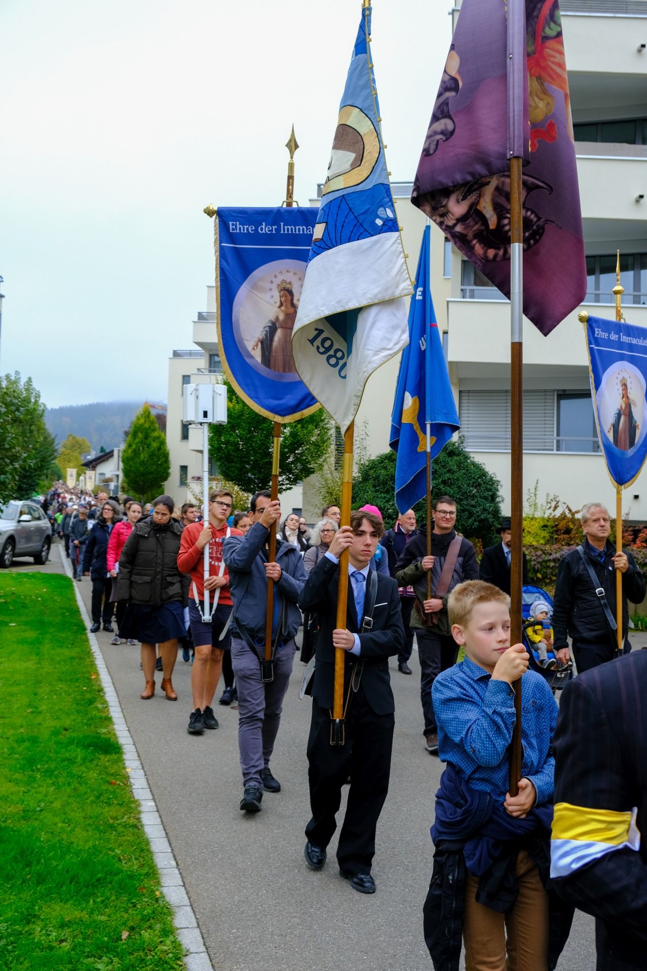 Prozession 30 von 33 webOrganisiert wurde die Prozession von der Militia Immaculatae (MI), zu Deutsch Miliz der Unbefleckten. Diese katholische Bewegung wurde 1917 vom heiligen Pater Maximilian Kolbe gegründet. Ihr Ziel ist die Förderung der Marienverehrung, insbesondere durch die Verbreitung der Wundertätigen Medaille und des Rosenkranzes. Pater Kolbe ist bekannt dafür, dass er im Konzentrationslager Auschwitz sein Leben für einen Mitgefangenen opferte. Die MI der traditionellen Observanz zählt mehrere Tausend Mitglieder im deutschsprachigen Raum und über 100’000 weltweit.